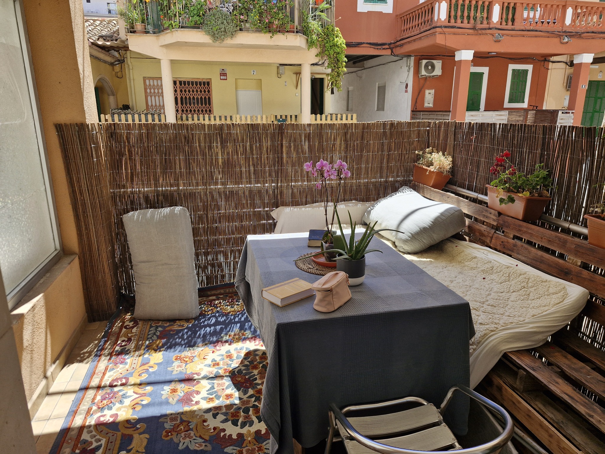 Palma old town apartment, light-flooded, spacious 160m2 on the fifth floor in one of the best parts of Palma. The Borne and the cathedral are very close by. The apartment consists of a large living-dining area (fireplace decoration), a spacious kitchen with dining table (washroom attached). 3 bedrooms, a fourth is possible. 1 bathroom with shower and bathtub accessible from 2 bedrooms. Another bathroom with shower. Air conditioning h/c. Electric radiators. Parquet. Built-in wardrobes. All rooms have an exit to small balconies. The apartment has a storage room of approx. 3m2 on the roof. The roof can be used by the community. The house has 2 elevators. The technical revision of the house from around 1996 is imminent and has already been paid for. There is an operator for the entire house of the garages, which can be rented from the owners of this house for 165€ per month. PRICE 1,220,000€